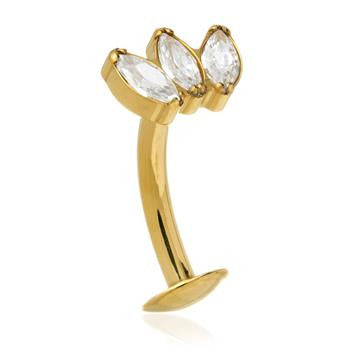 Zircon Gold Ti Threadless Triple Marquise Floating Navel Bar