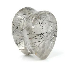 Quartz with Rutilations of Tourmaline Stone Plug - Sold individually, buy 2 for a pair Sizes: 6x9mm, 7x10mm, 8x12mm, 9x14mm, 10x15mm, 12x17mm, 13x19mm, 14x21mm, 15x22mm, 17x25mm This is a natural semi precious stone item which will break / chip if dropped