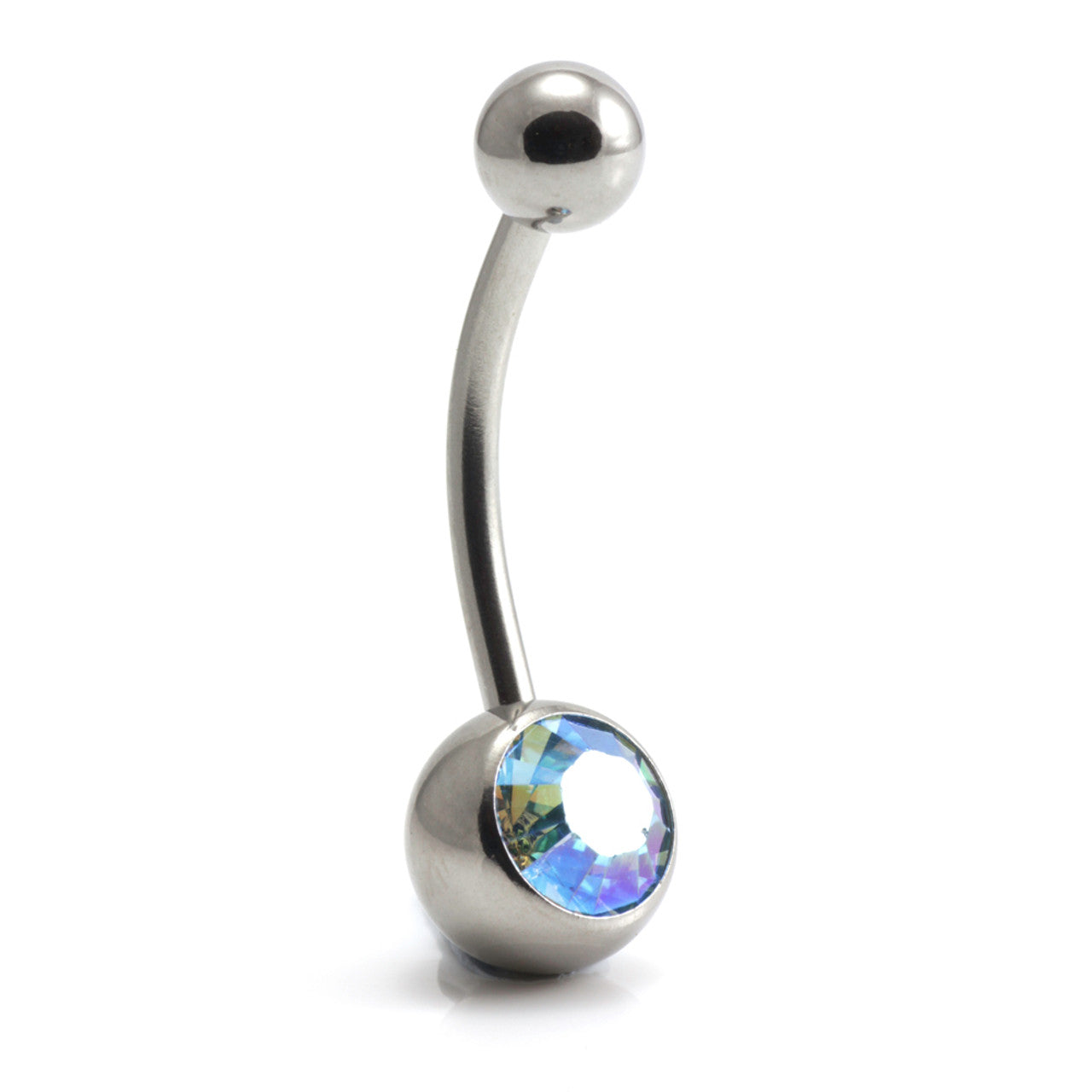 316L Surgical Steel Single Jewelled Belly Bar Gauge: 1.6mm Ball Size: 5/8mm Length: 6/8/10/12/14mm Swarovski Crystal Gem Stones