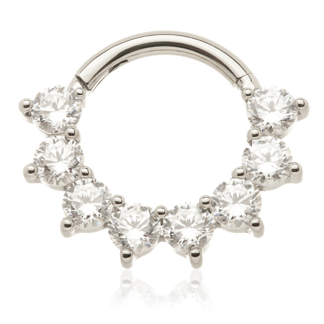 Ti Couture Forward Facing Round Gem Hinge Ring Gauge: 1.2mm Diameter: 8mm Gem Colour: Crystal Medical Grade Titanium 6Al-4VEli ASTM:F-136