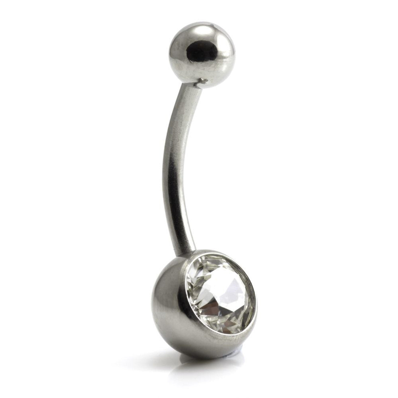 Titanium External Thread Jewelled Navel - UK Made Gauge: 1.6mm Sizes: 6/8/10/12/14/16mm Ball Sizes: 5/8mm Medical Grade Titanium 6Al-4VEli ASTM:F-136 Swarovski Crystal Gem Stones
