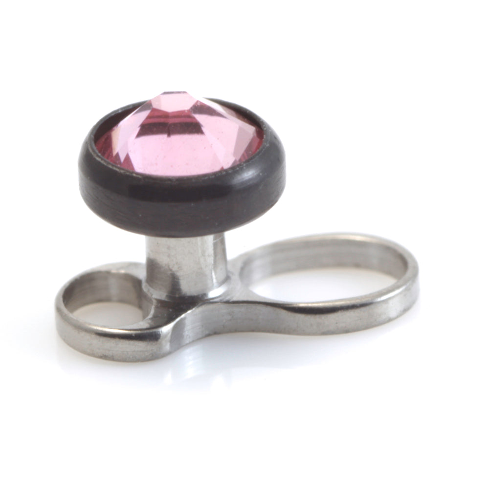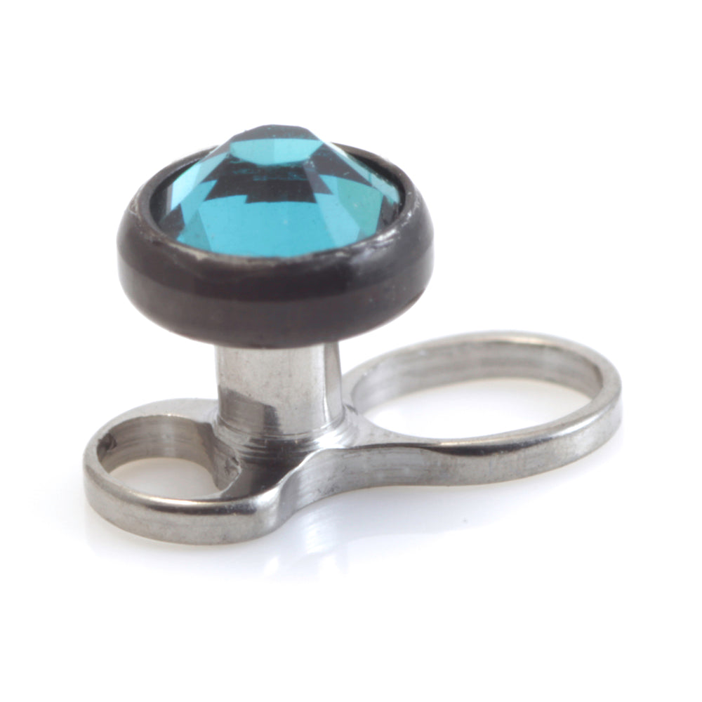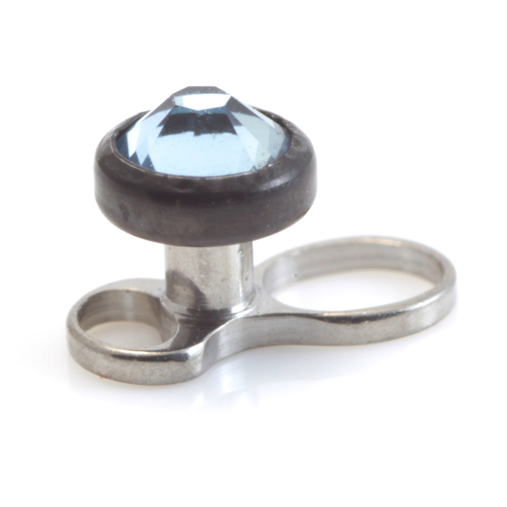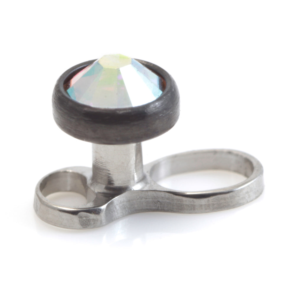 Titanium Micro Dermal Anchor with Black 3mm Gem Disk (internal thread) Gauge: 1.2mm / Thread: 0.8mm Height: 1.5mm or 2mm Disk Size: 3mm or 4mm Gem Colours: Crystal / AB / Aqua / BZ / Lt Rose / Lt Siam