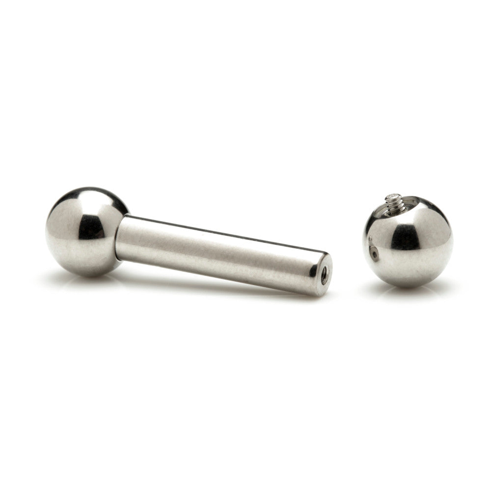 Large Gauge Internal Thread Titanium Straight Barbell Gauge: 8mm Length: 12, 14, 16, 19mm Ball Size: 12mm (as standard) Medical Grade Titanium 6Al-4VEli ASTM:F-136