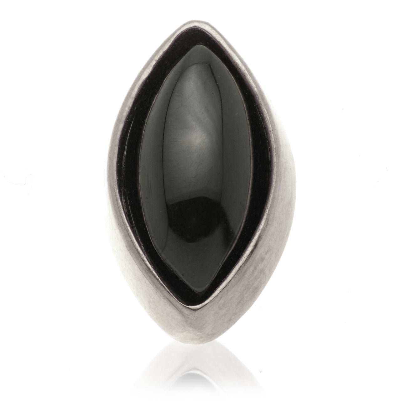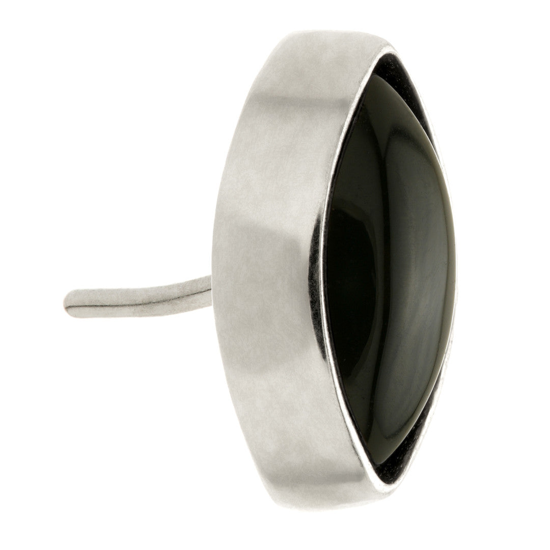 TL - 14ct Gold Threadless Black Agate Cabochon Marquise Pin Attachment